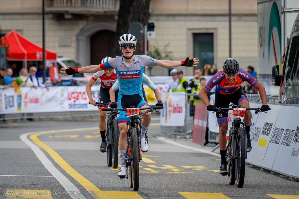Die dritte Station des diesjährigen Swiss Bike Cups war im mehrtägigen Bike-Festival «Lugano Bike Emotions» integriert und hatte mit dem Cross-Country-Wettbewerb (XCO) und dem Short Track (XCC) zwei Rennen im Programm. Das Highlight aus Liechtensteiner Sicht war das Short Track-Fest in der Innenstadt von Lugano. Das Stadtrennen im Tessin hatte Felix Sprenger schon immer getaugt. Auch am Sonntag fühlte er sich gut und sein Rennen ging perfekt auf. Der Triesner fuhr taktisch klug immer auf den Positionen 2 und 3, um Kraft zu sparen. Er fuhr konzentriert und war bereit, als es galt einen angreifenden Fahrer nicht wegziehen zu lassen. Im steilen Anstieg der letzten Runde gelang es ihm schliesslich einen kleinen Vorsprung zu den Verfolgern herauszufahren. Das Ziel vor Augen zog er den Sprint an und konnte jubelnd über die Ziellinie fahren. Nach dem zweiten Rang im Heimrennen in Schaan feierte Felix Sprenger damit seinen ersten Sieg bei den Junioren.