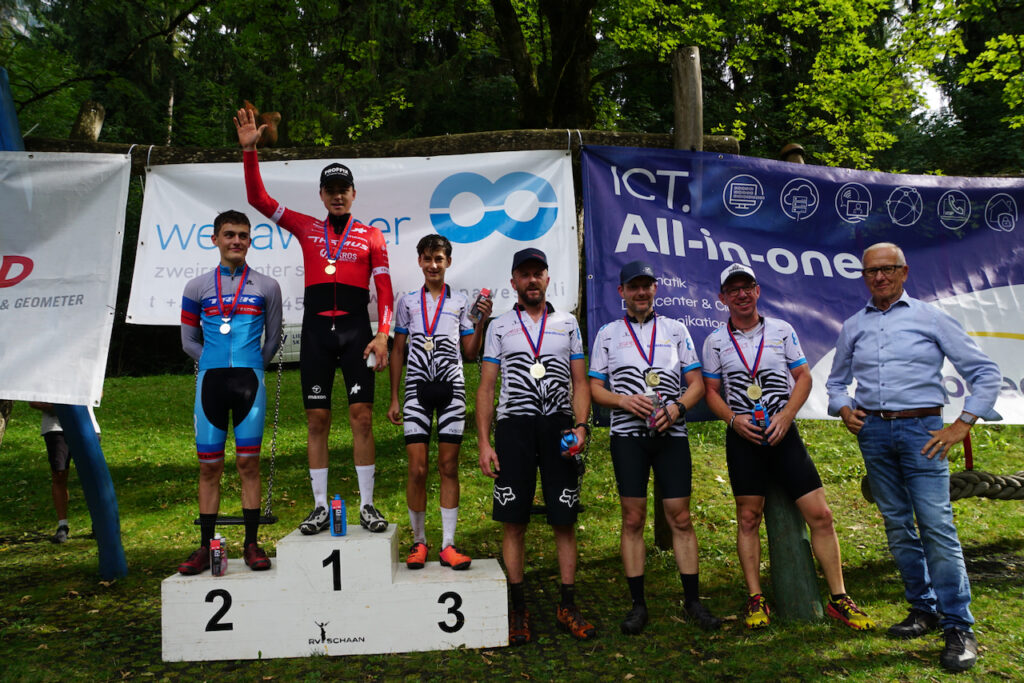 Auf dem dritten Rang war mit Emil Philipp derjenige Fahrer, der an diesem Tag die meisten Runden im Dux-Wald zurückgelegt hatte. Am Morgen fuhr er über sechs Runden zum zweiten Rang bei der U15. Danach entschied sich der Fahrer des RV Schaan spontan, auch beim Rennen um den Landesmeister teilzunehmen und wurde mit Bronze belohnt: «Damit hätte ich natürlich nie gerechnet», so der 13-Jährige. Jakob Lippuner, Philipp Meier und Marco Eggenberger belegten die weiteren Plätze.