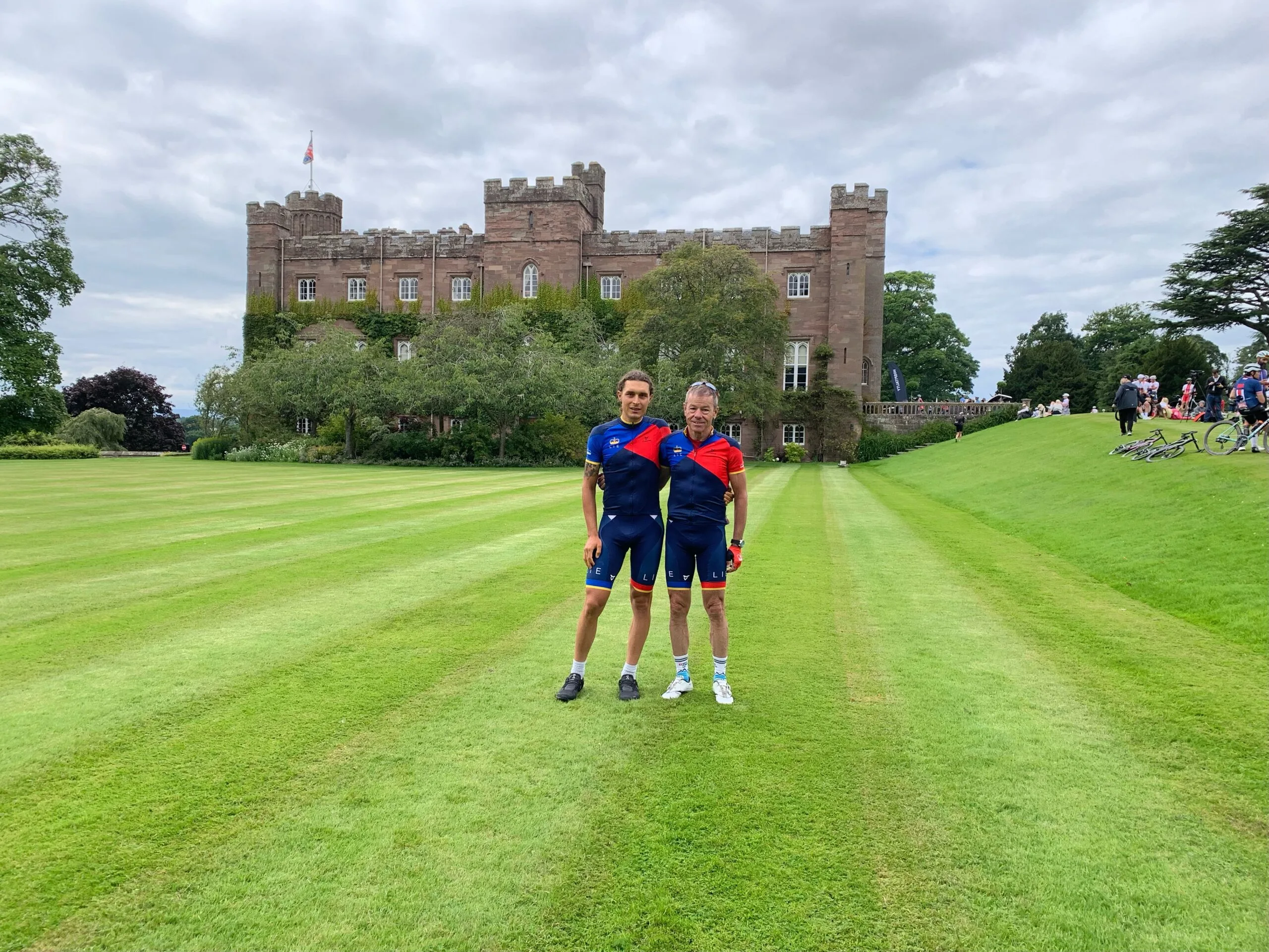 Michele Paonne (li) und Ewald Wolf vor dem Scone Palace in der Nähe der schottischen Stadt Perth.